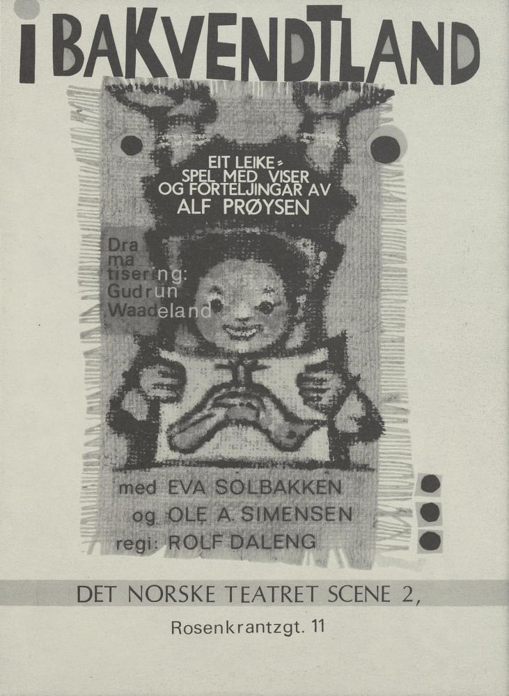 Forestillingsprogram for Det Norske Teatrets produksjoner Veslefrikk med fela (1972) og I Bakventland (1971).