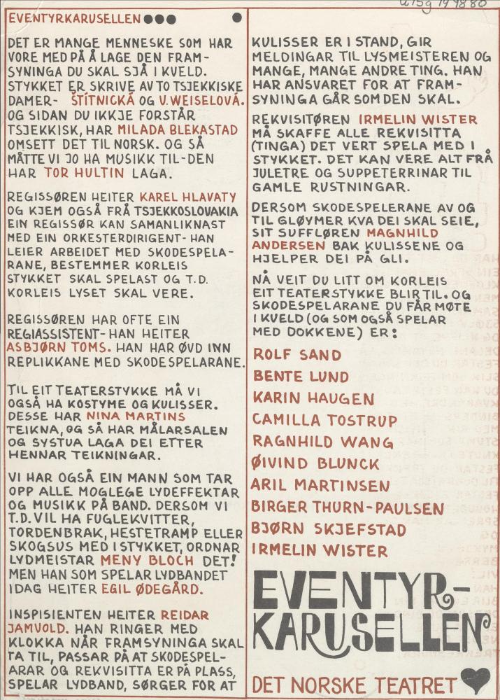 Forestillingsprogram for Det Norske Teatrets produksjon Eventyrkarusellen (1970)