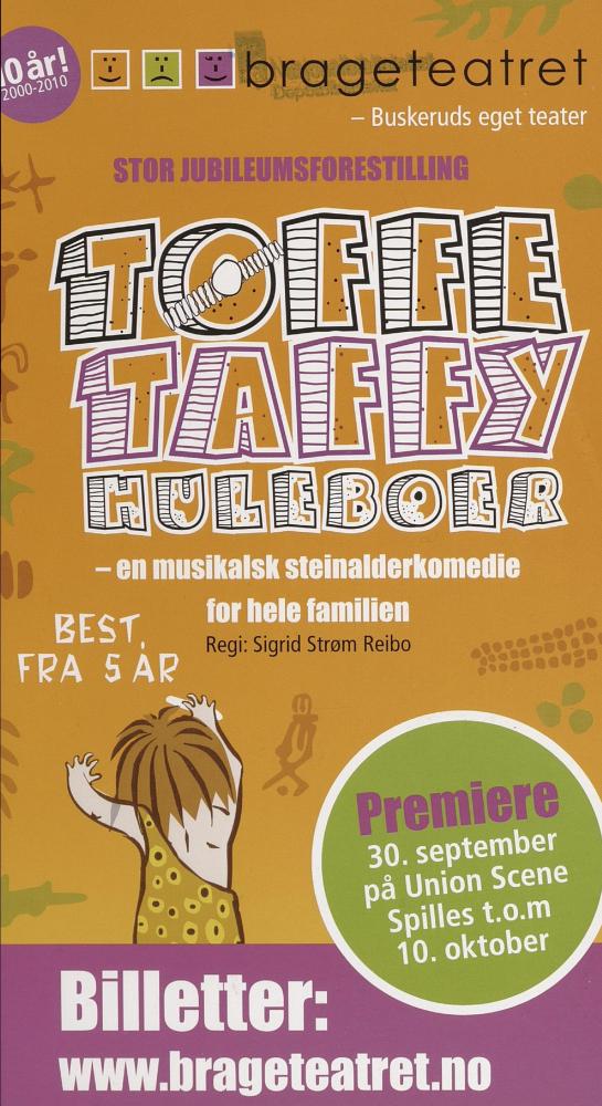 Forestillingsprogram for Brageteatrets produksjon Tøffe Taffy Huleboer - en musikalsk steinalderkomedie for hele familien! (2010)