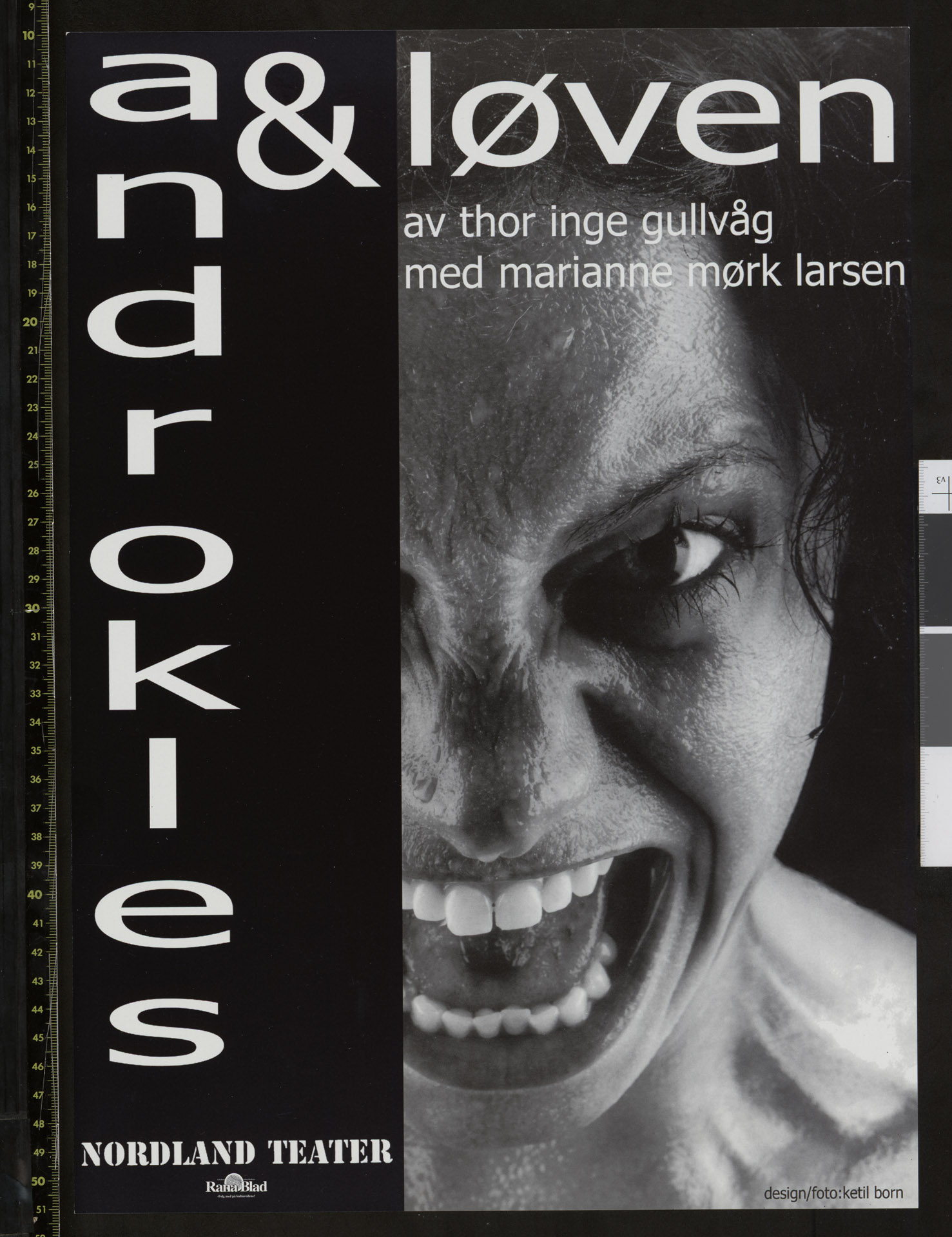 Plakat for Nordland Teaters produksjon "Androkles og Løven" (2000).