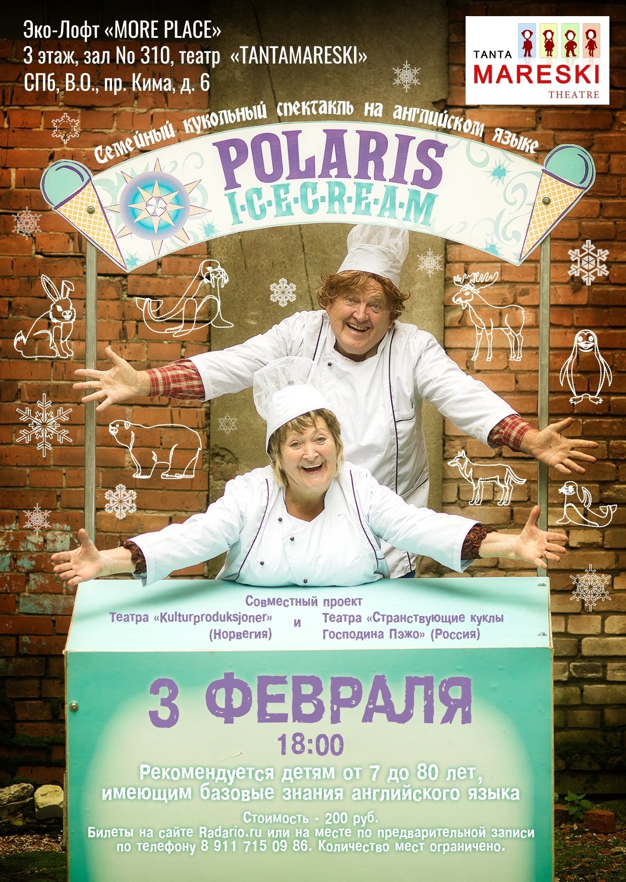 Plakat for Kulturproduksjoners produksjon "PolarIs" (2019). Plakaten er fra forestillingen som ble spillt i Russland i 2019