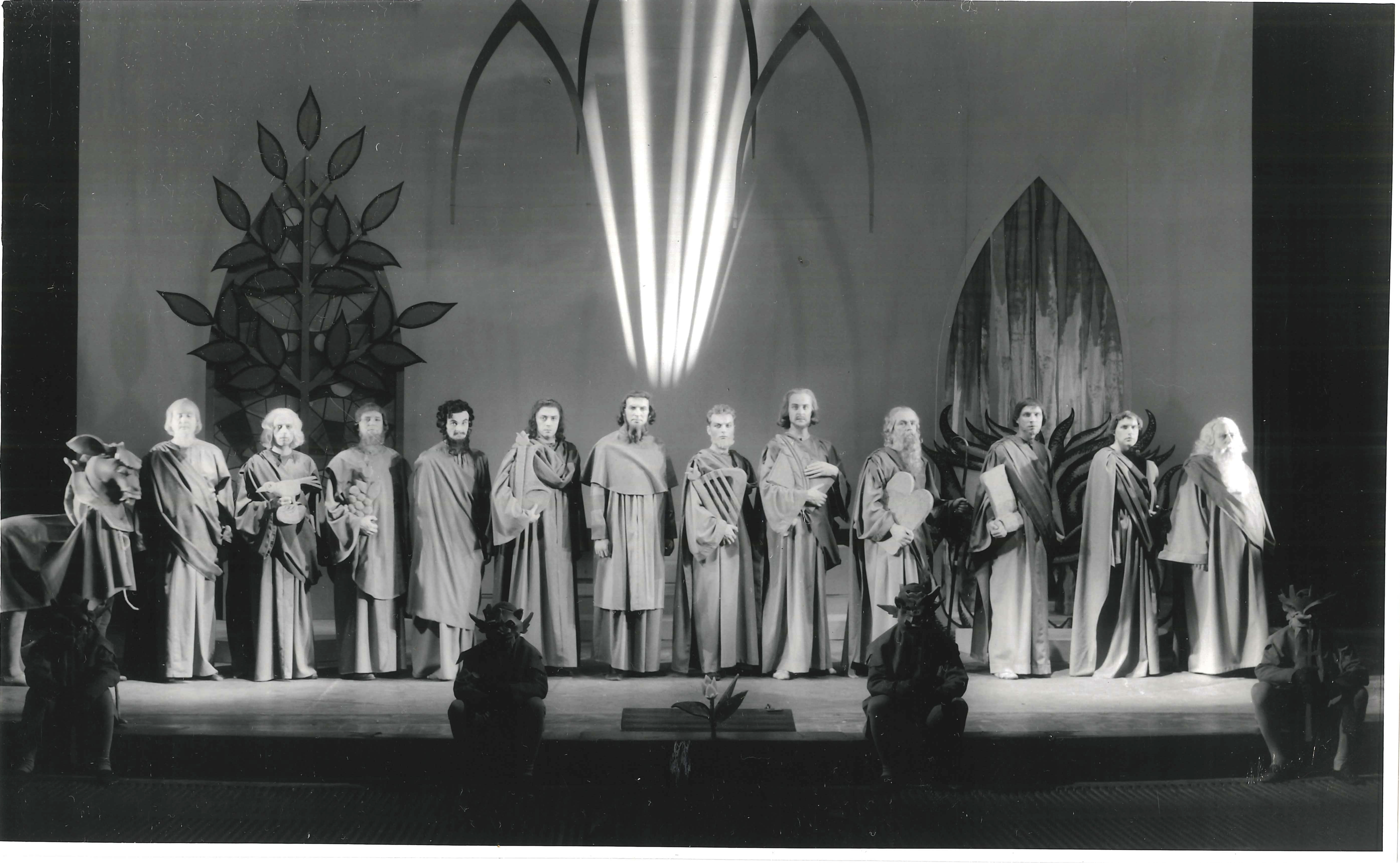Fotografi fra Den Nationale Scenes produksjon ..it spel om Adams fal (1962).
