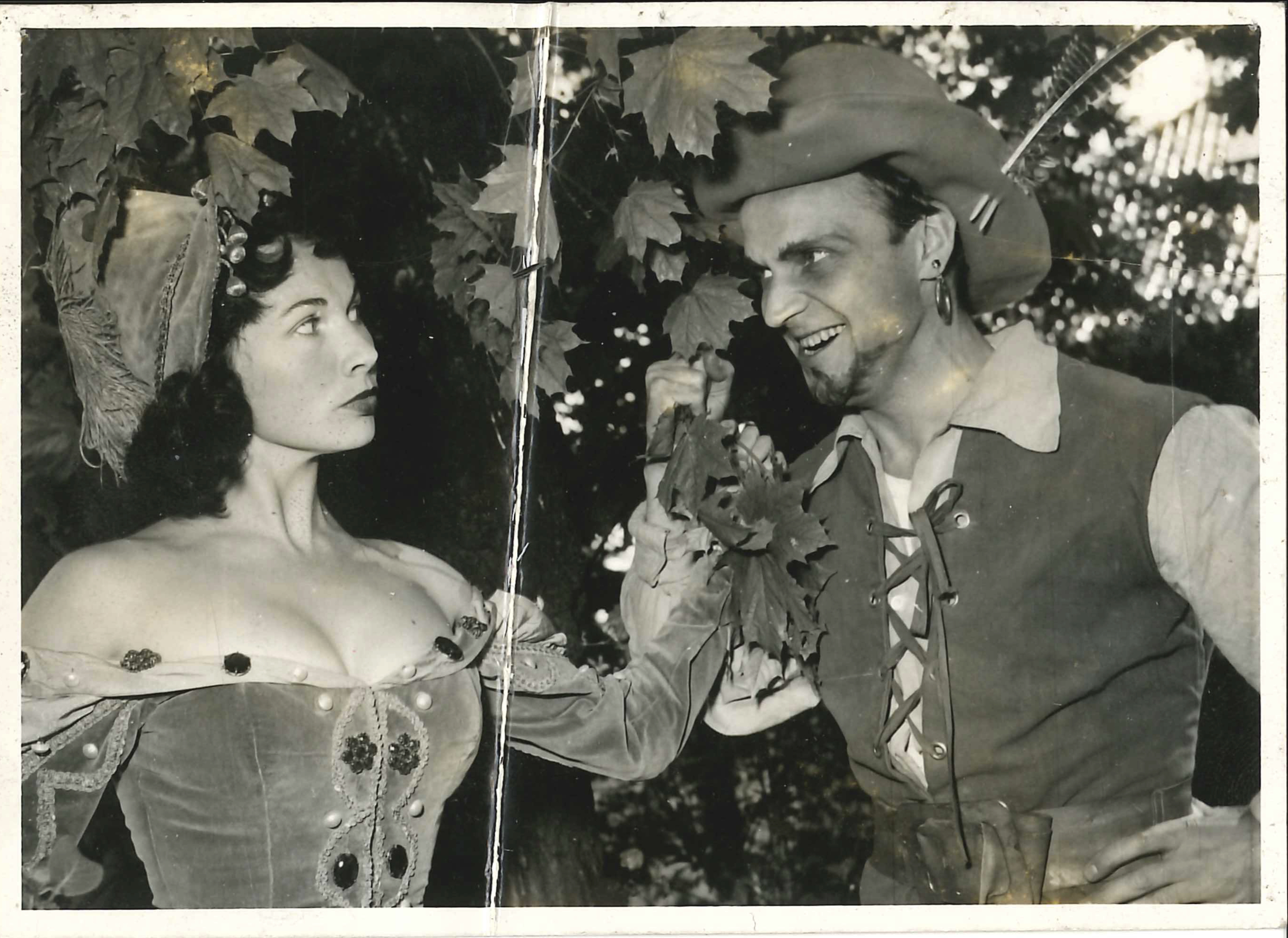 Fotografi fra Sommerteatret i Frognerparkens produksjon Troll kan temmes (1955).