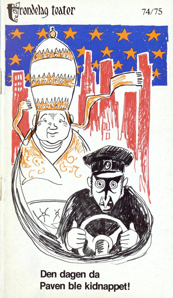 Forestillingsprogram for Trøndelag Teaters produksjon Den dagen da Paven ble kidnappet (1974).