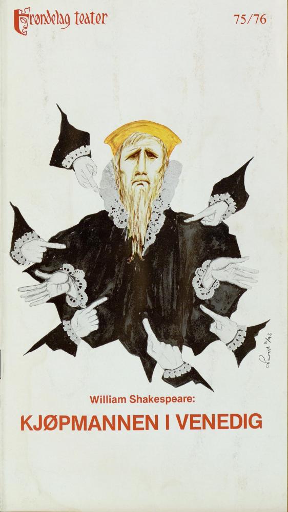 Forestillingsprogram for Trøndelag Teaters produksjon Kjøpmannen i Venedig (1975).