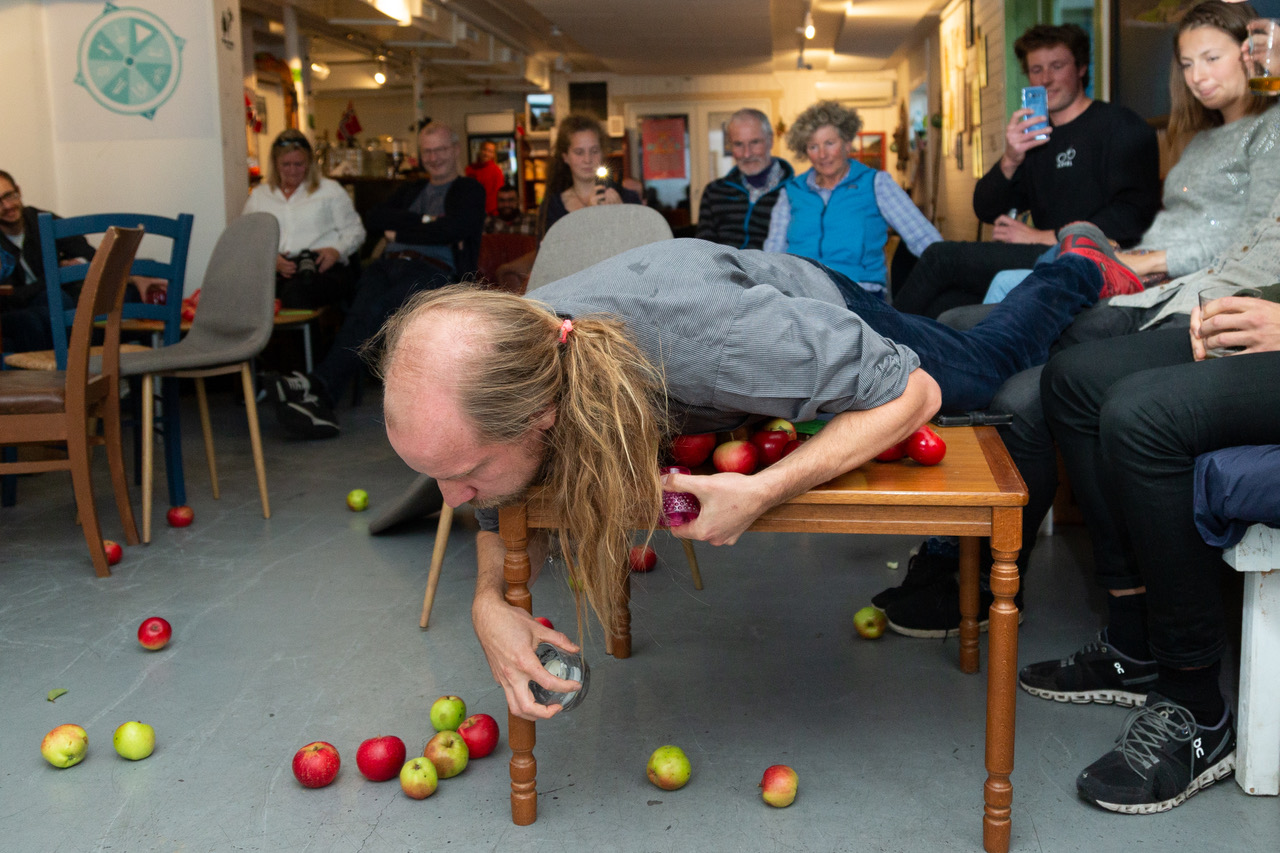 Fotografi fra Ferske Sceners produksjon Talking in the Rain (2019). Fotografiet er fra et publikumsmøte i Sogndal i september 2019.