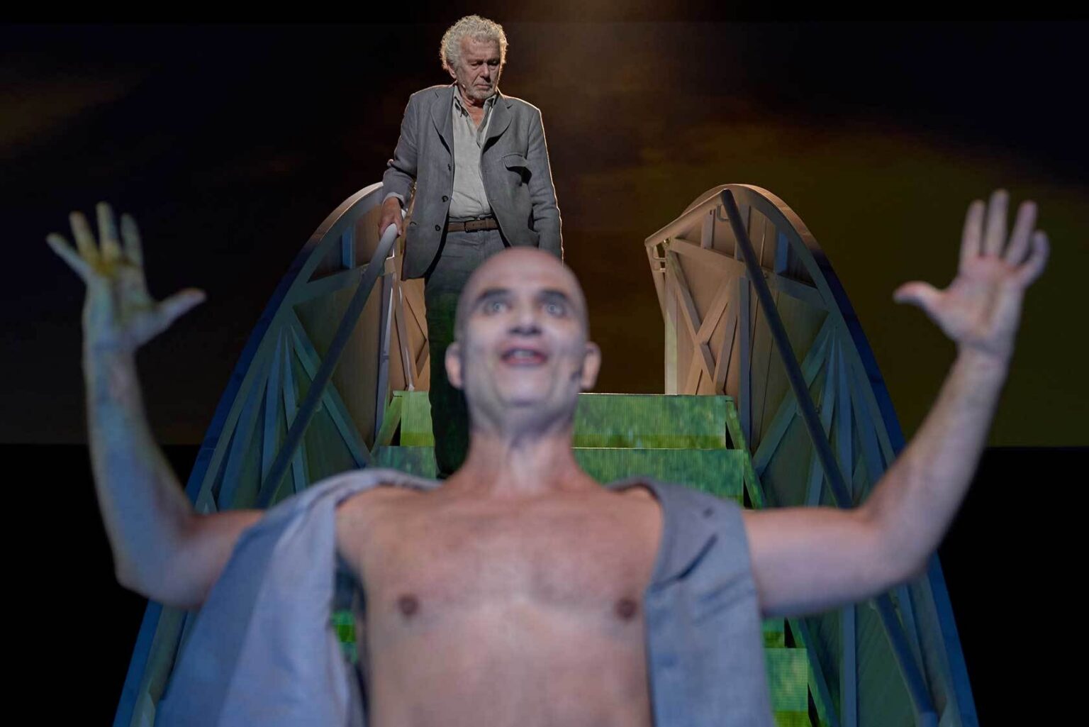 Fotografi fra Det Norske Teatrets produksjoner Peer Gynt (2018) og Peer Gynt. Digital versjon (2020)